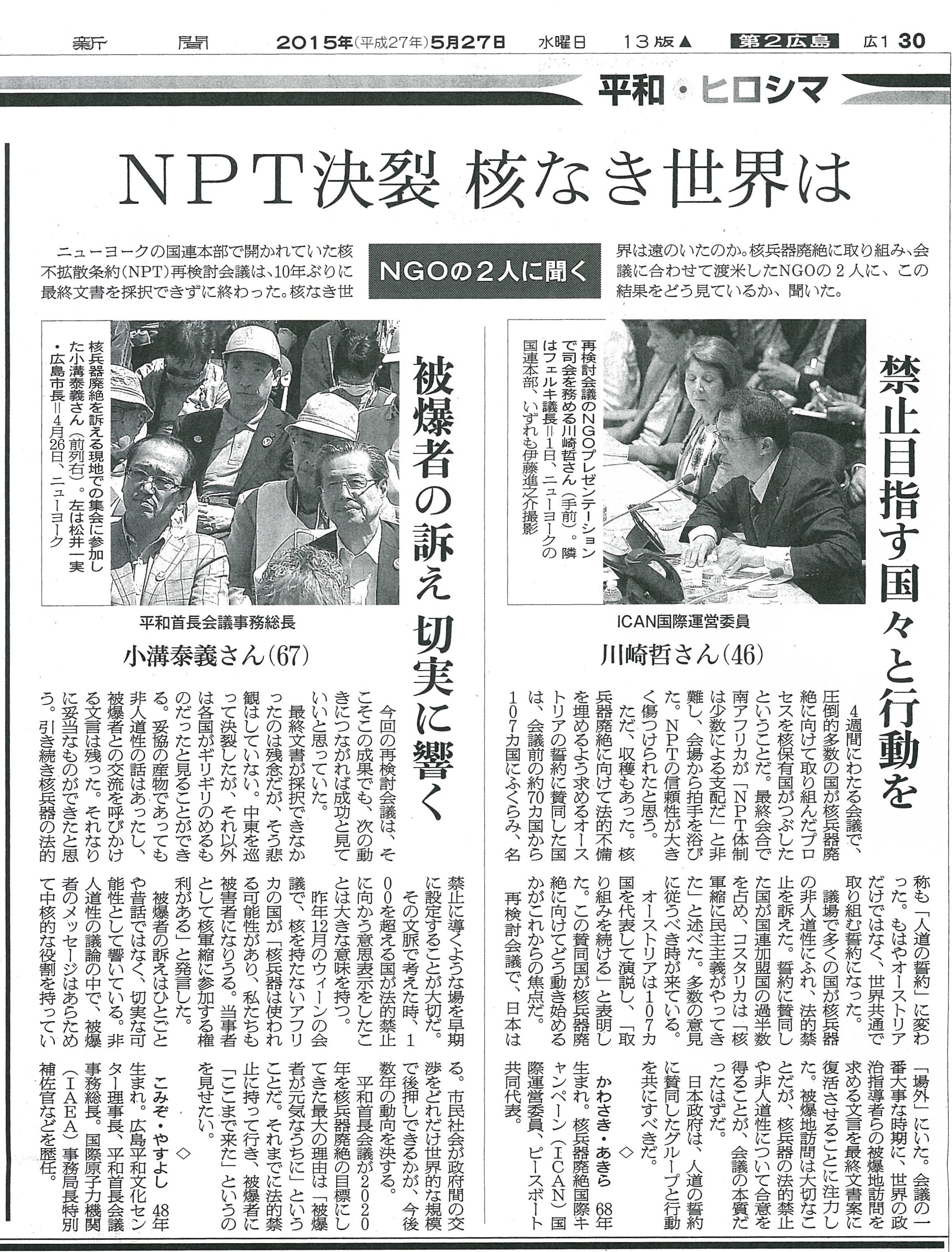 2015.5.26 NHKラジオ「夕方ニュース」での特集「NPT再検討会議 合意ないまま閉幕 核廃絶に向けての課題は?」に出演したときのコメント(音声) こちらから