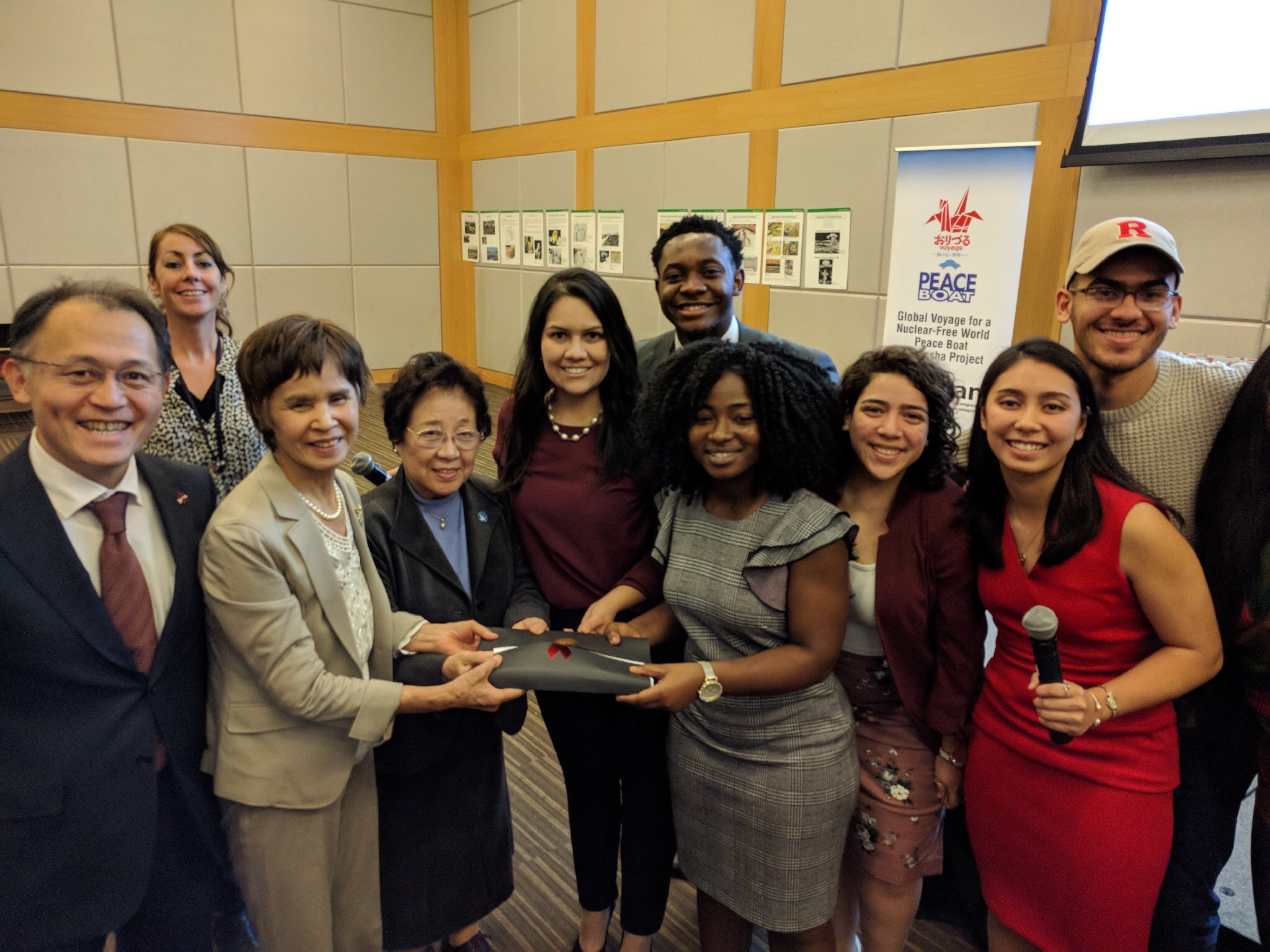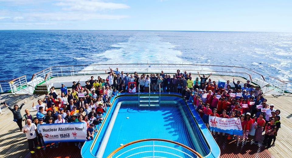 9月1日に横浜を出航した第99回ピースボートが、地球一周の船旅を終え12月17日に横浜に帰港します。17日午前、帰港記者会見が横浜で行われます(会見について詳しくはこちら)。この船旅では「ヒバクシャ地球一周 証言の航海」を実施。広島の被爆者の塚本美知子さんと空民子さん、そしてユース非核特使として安藤真子さんが参加し、地球一周のさまざまな寄港地で証言活動に取り組みました。私もクルーズ冒頭に参加したほか、ニューヨークでは被爆者の皆さんと共に国連総会でのサイドイベント、ラドガース大学での証言会などに参加しました。活動の様子は「おりづるプロジェクトのブログ」を是非ご覧下さい。※帰港会見の様子とプロジェクト報告はこちら。
