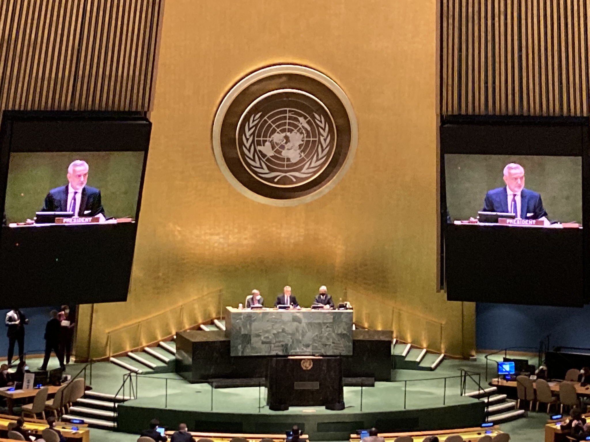 そしてその流れで、パラ33【パラ130】において、核兵器禁止条約の採択、発効、第一回締約国会議開催が「認識(acknowledge)」されています。核兵器禁止条約に関するこうした事実の叙述については、これまで同条約を強く嫌がってきた核兵器国も拒否できないところまで来ていると思われます。ここに、核兵器禁止条約とNPTの補完性への言及が加われば、さらに意義深いものになります。しかし、補完性に関する言及がなかったとしても、NPT再検討会議の最終文書に核兵器禁止条約に関する言及がきちんとなされれば、それだけで、両条約には関連性があることを示すことになります。また、今回のNPT再検討会議の最終文書に核兵器禁止条約への言及が残れば、それは今後、日本が提出する国連総会決議の文面のベースにもなり得るでしょう。